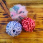 Overrask en garnelsker med 3 små, tilfældigt udvalgte garnkugler lavet af restegarn.