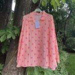 Lækker, oversize skjorte i double gauze (stofble-stof) med striber og blomster